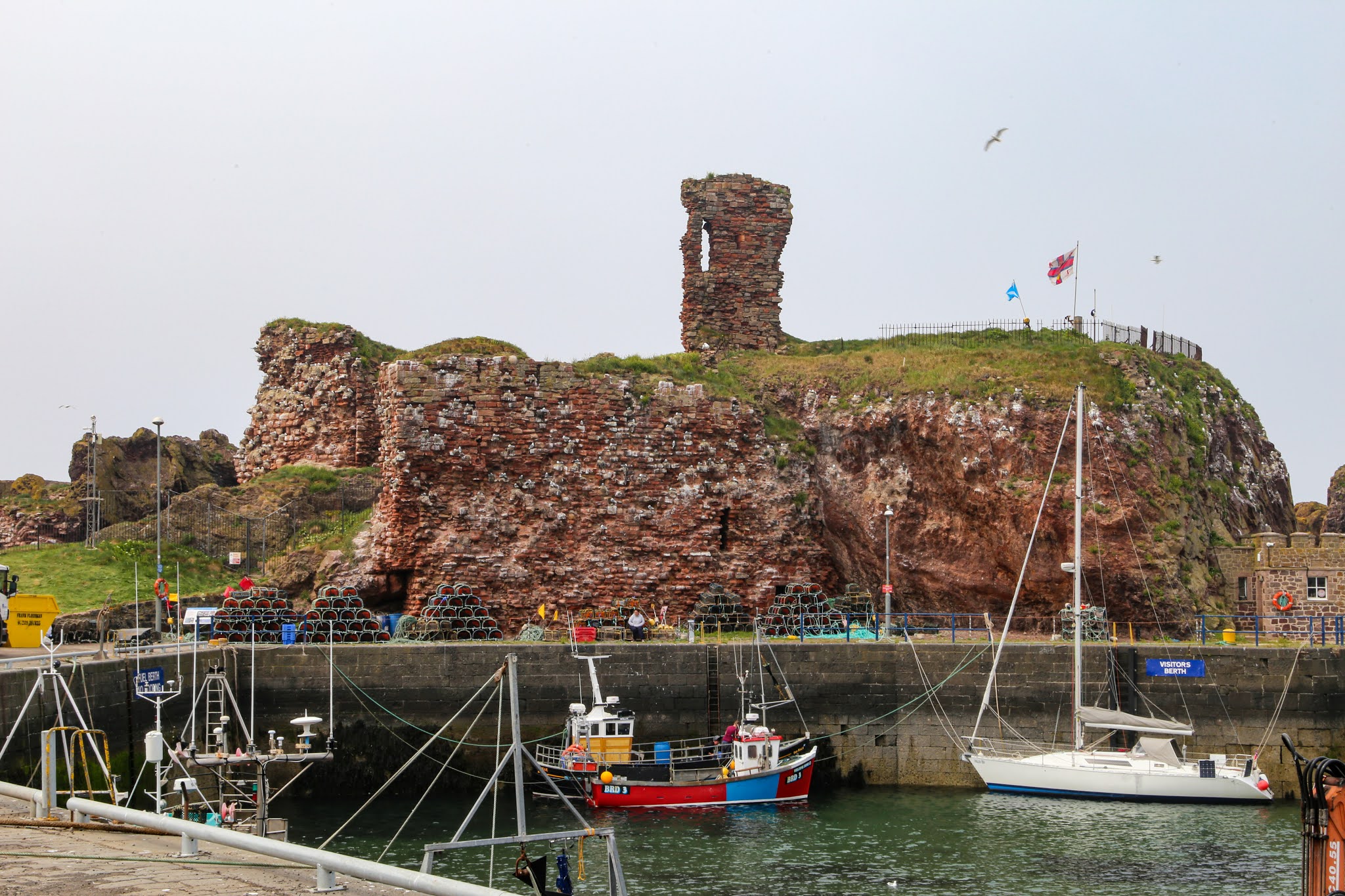 Like many other Scottish towns Dunbar has had a turbulent history as witnessed by the ruined castle above the harbour. The fortress was attacked by Edward 1 of England in 1295 but valiantly withstood a six week siege. Mary Stuart and the Earl of Bothwell sought refuge there after the murder of David Rizzio in 1566. The castle was demolished in 1567 and the stones were used by Cromwell to improve the harbour.